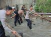 ANGGOTA BINMAS MELAKSANAKAN PEMASANGAN BANNER DI OBJEK WISATA KOLAM RENANG GURAMI SEDURI DESA WONODADI