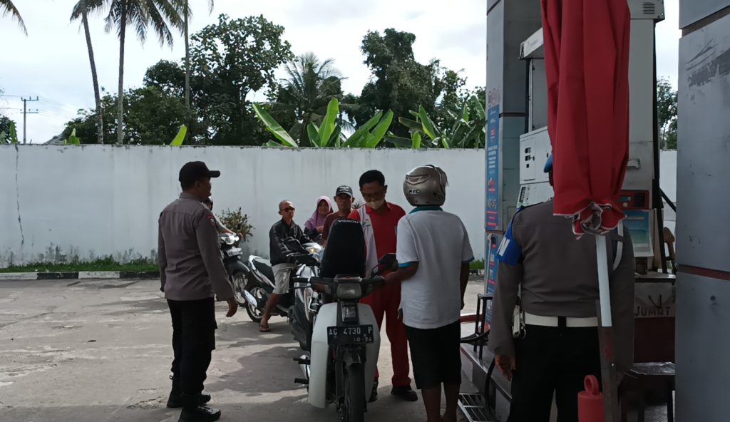 Kamis 27 Agustus 2025, Anggota Polsek Nglegok melaksanakan silaturahmi kamtibmas dan melaksanakan patroli dialogis dengan karyawan dan warga yang membeli BBM di SPBU Jiwut.