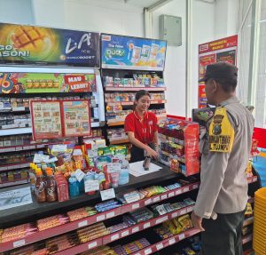 Polsek Sukorejo – Anggota Polsek Sukorejo, Aipda Suhadi, melaksanakan patroli dialogis di salah satu gerai Alfamart wilayah Kecamatan Sukorejo, Kota Blitar. Rabu, 10 September 2025.