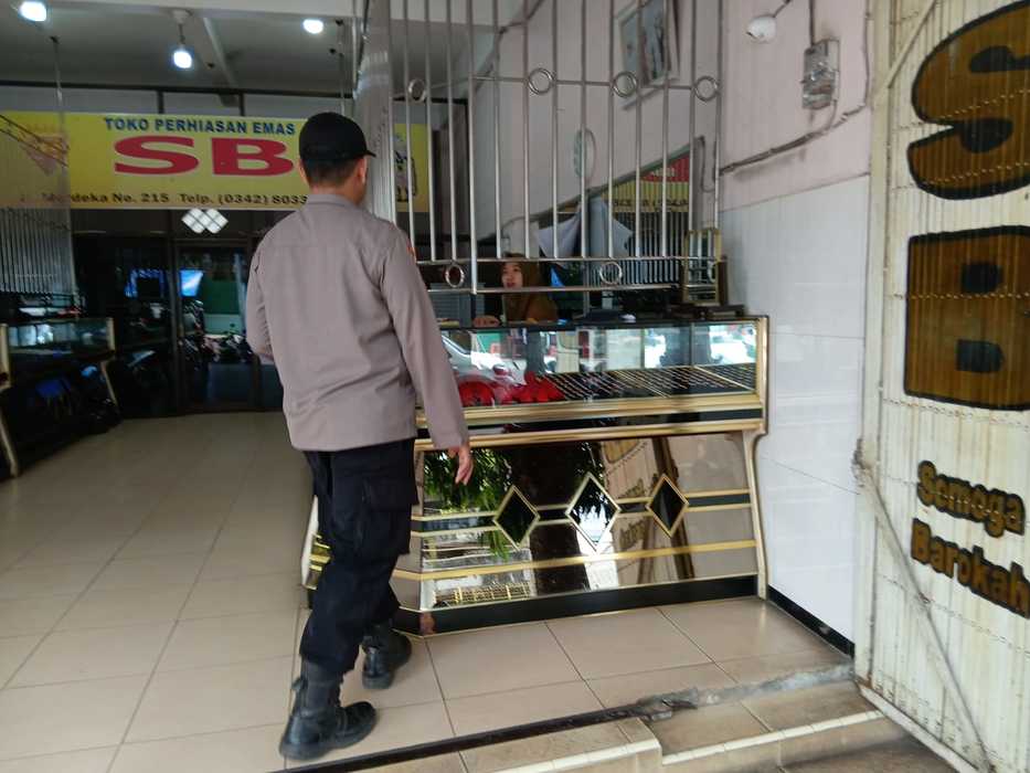 Polsek Sukorejo – KA SPK Polsek Sukorejo Aiptu Hermanto melaksanakan kegiatan patroli dialogis di sejumlah toko perhiasan emas yang berada di wilayah hukum Polsek Sukorejo, Kota Blitar. Rabu 15 Oktober 2025.
