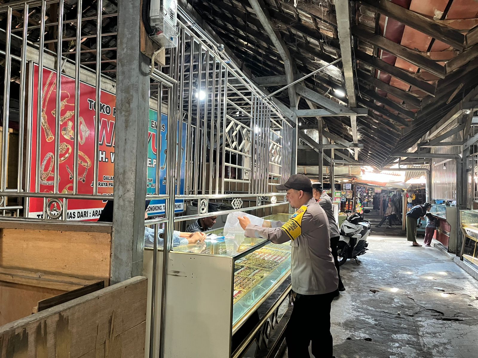 Petugas menghimbau kepada warga yang sedang membeli perhiasan di Toko Emas “agar selalu waspada terhadap pelaku tindak kejahatan yang selalu memanfaatkan kelengahan kita, dan melaporkan jika ada tindak kejahatan atau Guantibmas ke pos Polisi terdekat tutup Petugas Piket