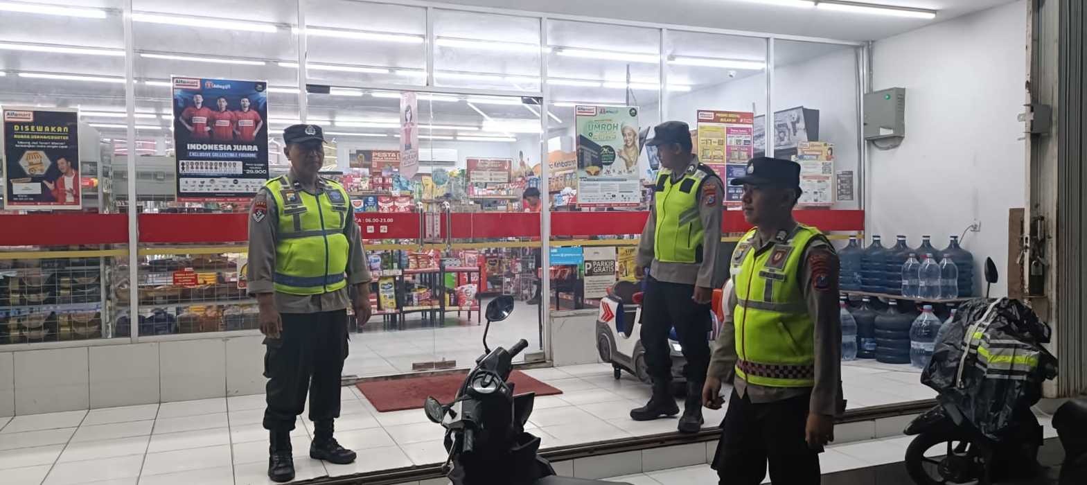ANGGOTA POLSEK WONODADI PATROLI OBVIT MALAM DI AREA SEKITAR ALFAMART