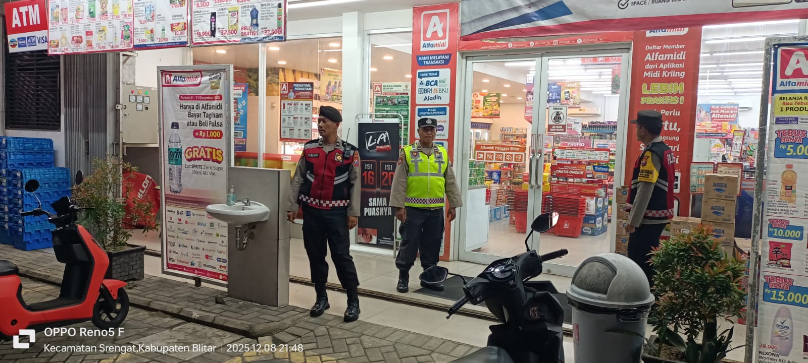 Seperti yang dilakukan oleh anggota Polsek Ponggok yang diawaki piket fungsi melakukan giat patroli dialogis di pertokoan modern Alfamidi yang ada di Desa Jatilengger Kecamatan Ponggok Kabupaten Blitar dan memberikan himbauan kamtibmas kepada karyawan Alfamidi. 8/12/2025 malam