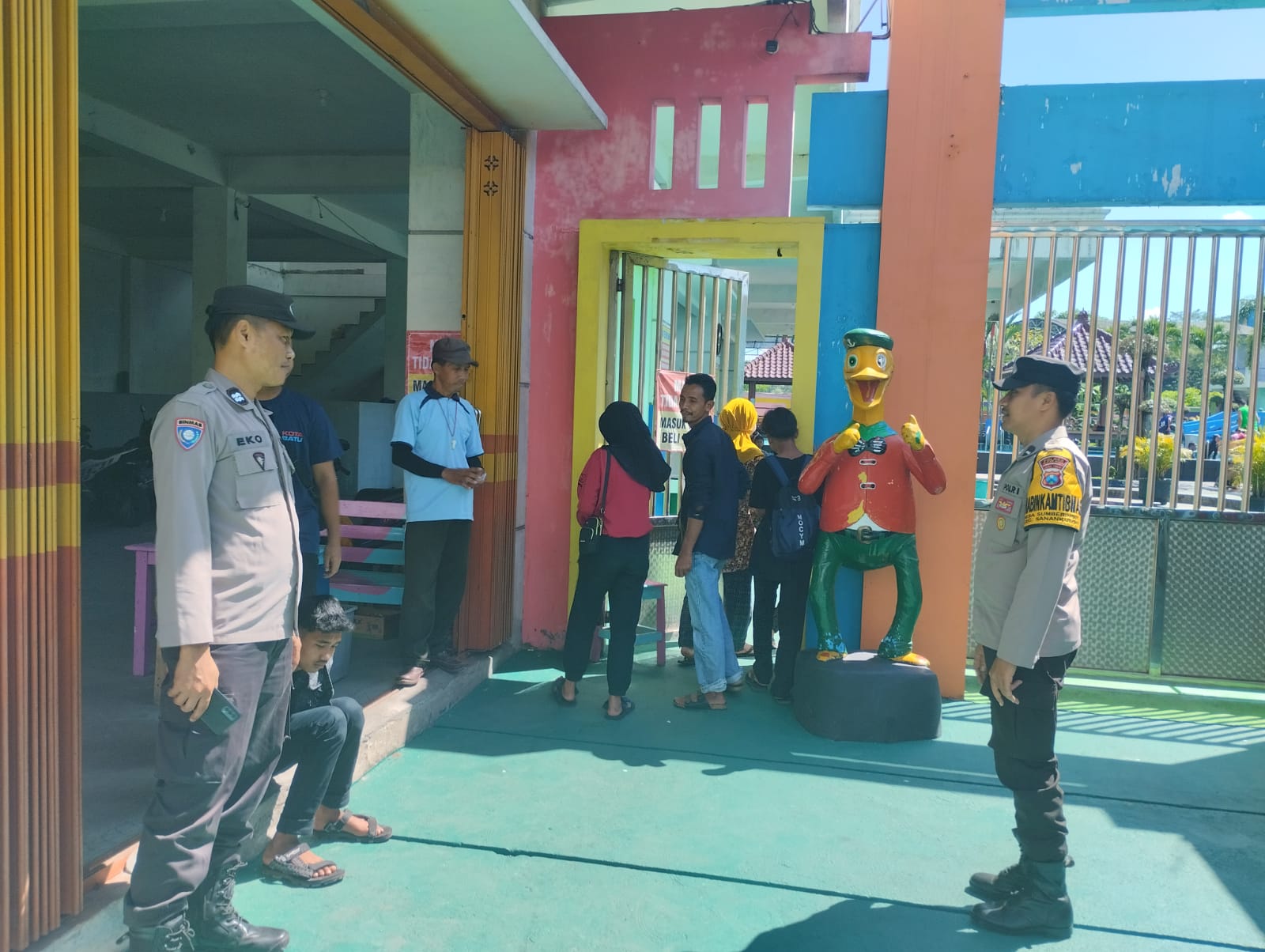 Polsek Sanankulon – Memasuki ahir pekan dan libur sekolah, tentu masyarakat memanfaatkannya untuk berwisata bersama anggota keluarga dengan bepergian keluar rumah. Salahsatu tujuan wisata atau rekreasi keluarga di wilayah hukum Polsek Sanankulon adalah kolam renang yang berlokasi di Desa Purworejo. Anggota unit Sabhara yang dipimpin oleh Aiptu Rudy Sujarwo beserta anggota melaksanakan patroli dialogis sebagai upaya untuk cegah atau antisipasi terhadap segala bentuk potensi gangguan kamtibmas maupun kriminalitas.