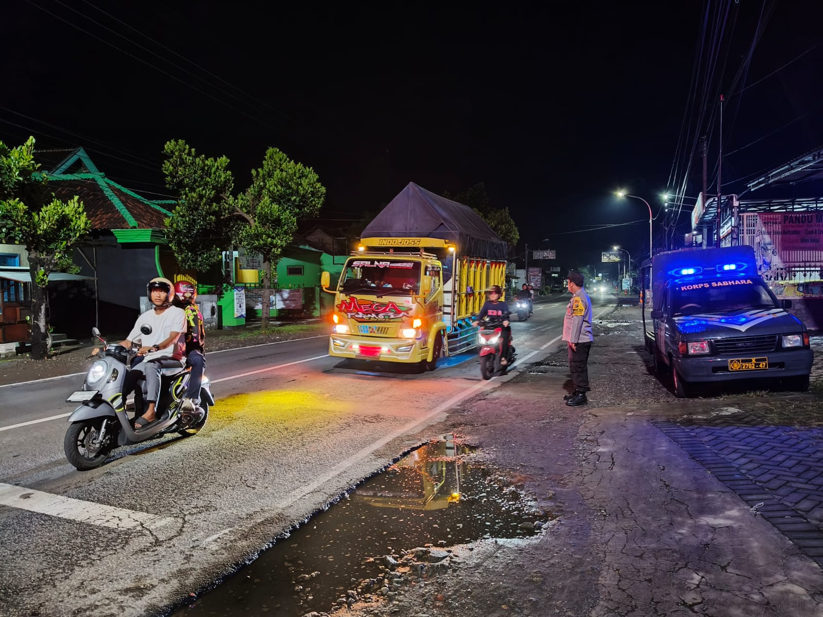 Anggota Polsek Sanankulon Intensifkan Patroli Jalan Raya Malam Hari Antisipasi Aksi Konvoi Oleh Perguruan Maupun Balap Liar.