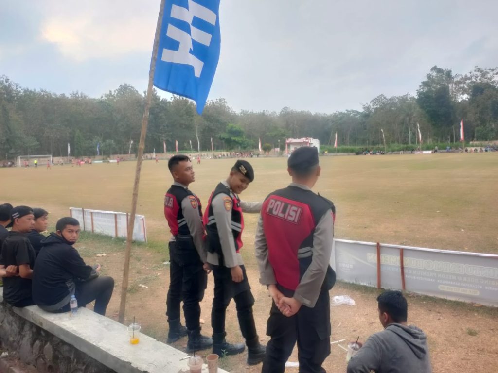 Anggota Polsek Sanankulon Intensifkan Pengamanan Kompetisi Sepak Bola Tarkam Lapangan Desa Gledug Antisipasi Perkelahian Antar Pendukung.