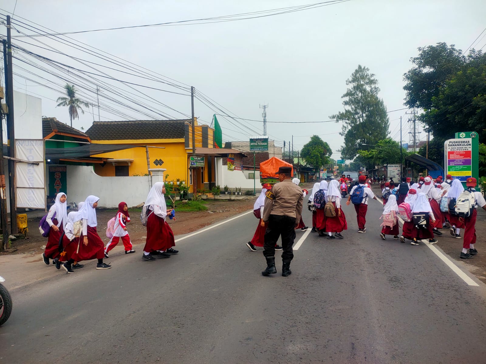 Seperti yang terlihat di beberapa titik pos pengaturan pagi, di wilayah Hukum Polsek Sanankulon pagi ini, seperti di Simpang 3 Batas Kota, Simpang 4 Cerme dan juga persimpangan depan Puskesmas Sanankulon, personil Polsek Sanankulon dan beberapa anggota lain sedang melaksanakan tugas pengaturan arus lalu lintas, terutama menyeberangkan warga dan anak sekolah yang akan berangkat menuju ke sekolah.