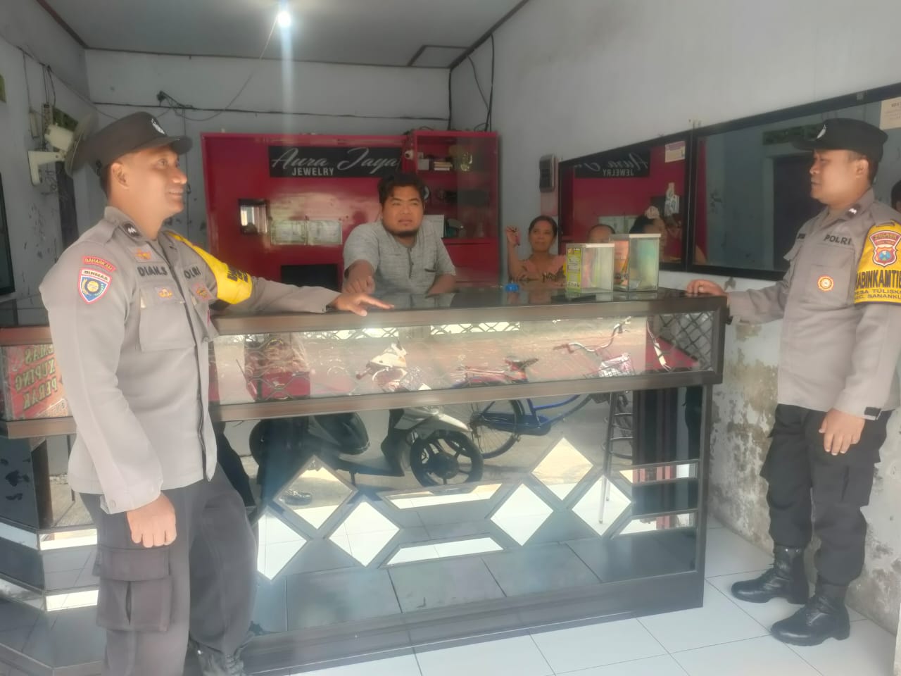 Polsek Sanankulon – Personil Polsek Sanankulon melaksanakan patroli antisipasi tindak kejahatan 3-C  dengan sasaran toko perhiasan emas yang ada di kawasan pasar tradisional Desa Sumberingin Kecamatan Sanankulon.