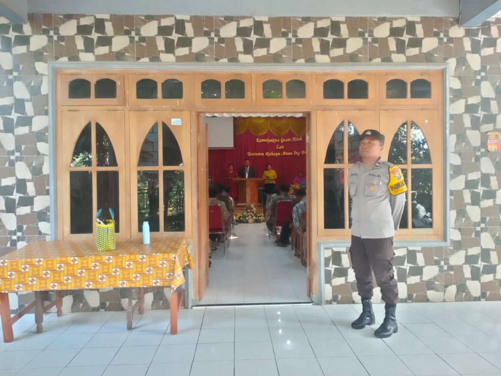 Polsek Sanankulon – Personil Polsek Sanankulon yang dipimpin KSPKT Aiptu Sunardi beserta anggota melaksanakan pengamanan ibadah Minggu pagi yang ada di Gereja Gereja. Aiptu Sunardi mengatakan bahwa kami beserta anggota turun dan perketat pengamanan Ibadah rutin setiap hari untuk menjaga situasi Kamtibmas tetap aman dan kondusif di lingkungan Gereja. Ucapnya.