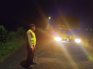 Personel Polsek Sanankulon Patroli Malam Hari Sasaran Pemukiman Warga Guna Menjaga Agar Situasi Tetap Aman.
