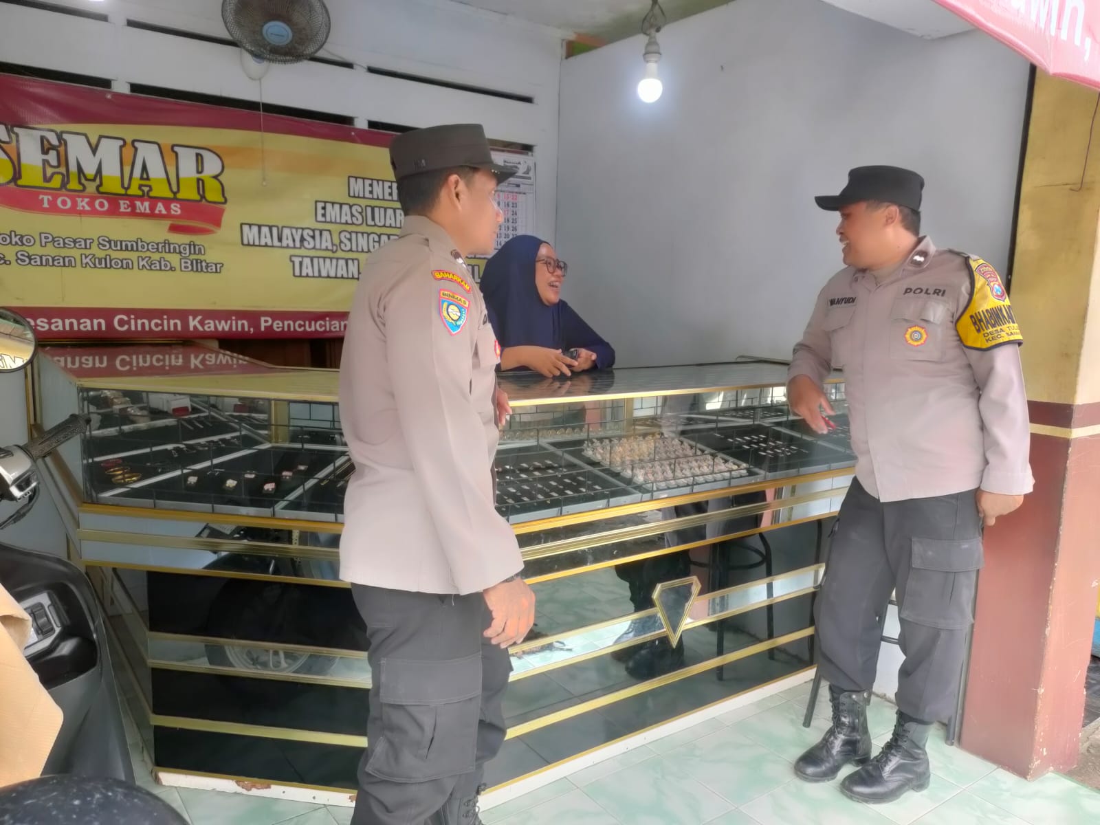 Petugas Aiptu Dian juga menambahkan untuk melengkapi perangkat keamanan seperti pemasangan cctv. “Lengkapi toko emas dengan perangkat CCTV yang dipasang disudut sudut kios sebagai standart keamanan”. ucapnya.