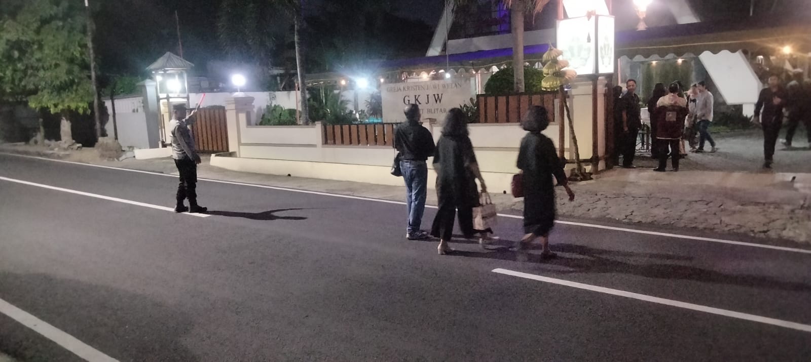 Blitar, 19 April 2025 – Guna memastikan kelancaran dan keamanan pelaksanaan ibadah, anggota Polsek Sananwetan melaksanakan pengamanan di Gereja Kristen Jawi Wetan (GKJW) yang berlokasi di Jalan Sumatra, Kecamatan Sananwetan, Kota Blitar, pada Sabtu (19/4/2025) pukul 17.00 WIB.