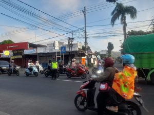Kehadiran Polri pada saat melaksanakan pengaturan dapat dirasakan langsung oleh masyarakat dalam berlalu lintas dan juga mencegah terjadinya pelanggaran di jalan yang dapat menimbulkan laka lantas ” tegas Kapolsek Srengat”.