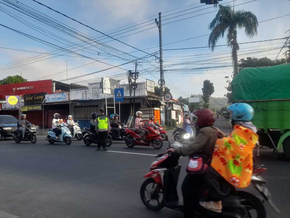 Polres Blitar Kota – Setiap pagi hari anggota Polsek Srengat Polres Blitar Kota selalu hadir di tengah – tengah masyarakat yang membutuhkan pelayanan masyarakat terutama pengguna jalan.Anggota Polsek Srengat melaksanakan kegiatan pengaturan arus lalu lintas baik di depan sekolah maupun di simpul – simpul jalan. Selasa, 09/09/2025.