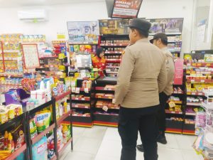 Personil melakukan patroli di minimarket dan bertemu karyawan toko setempat sembari menyampaikan himbauan tentang kewaspadaan terhadap gangguan Kamtibmas.