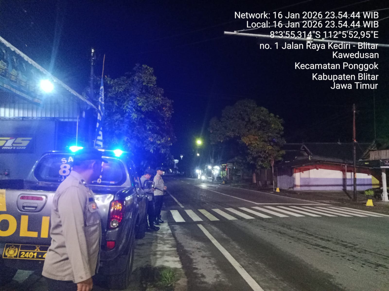 Polsek Srengat – Dalam rangka memelihara keamanan dan ketertiban masyarakat, Polsek Srengat gelar Patroli Blue Light. Kegiatan ini bertujuan untuk memberikan keamanan dan kenyamanan di wilayah hukum Polsek Srengat dari kriminalitas dan tindak pidana lainnya juga gangguan Kamtibmas. Jumat, 16/01/2026.