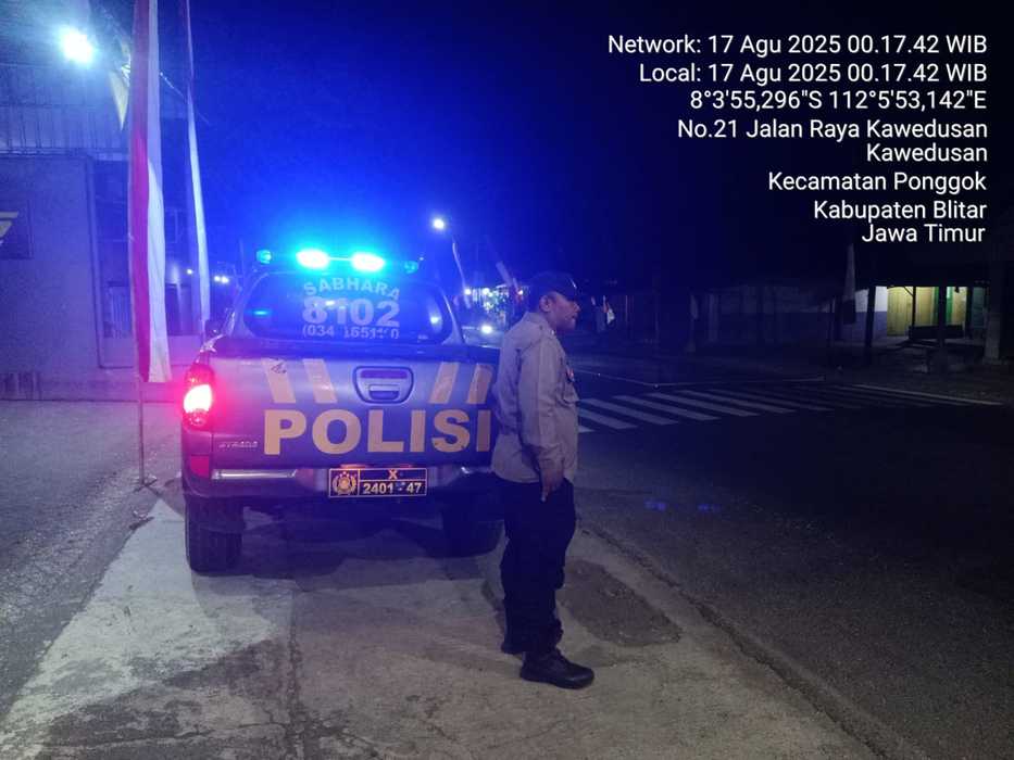 Polsek Srengat – Dalam rangka memelihara keamanan dan ketertiban masyarakat, Polsek Srengat gelar Patroli Blue Light. Kegiatan ini bertujuan untuk memberikan keamanan dan kenyamanan di wilayah hukum Polsek Srengat dari kriminalitas dan tindak pidana lainnya juga gangguan Kamtibmas. Sabtu, 16/08/2025.