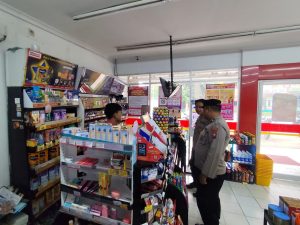 Personil melakukan patroli di minimarket dan bertemu karyawan toko setempat sembari menyampaikan himbauan tentang kewaspadaan terhadap gangguan Kamtibmas.