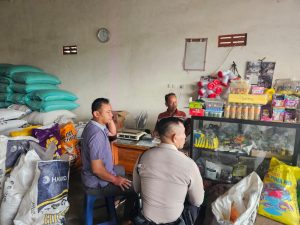 Personil melakukan patroli di minimarket dan bertemu karyawan toko setempat sembari menyampaikan himbauan tentang kewaspadaan terhadap gangguan Kamtibmas.