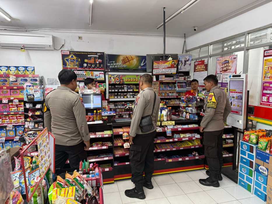 Personil melakukan patroli di minimarket dan bertemu karyawan toko setempat sembari menyampaikan himbauan tentang kewaspadaan terhadap gangguan Kamtibmas.