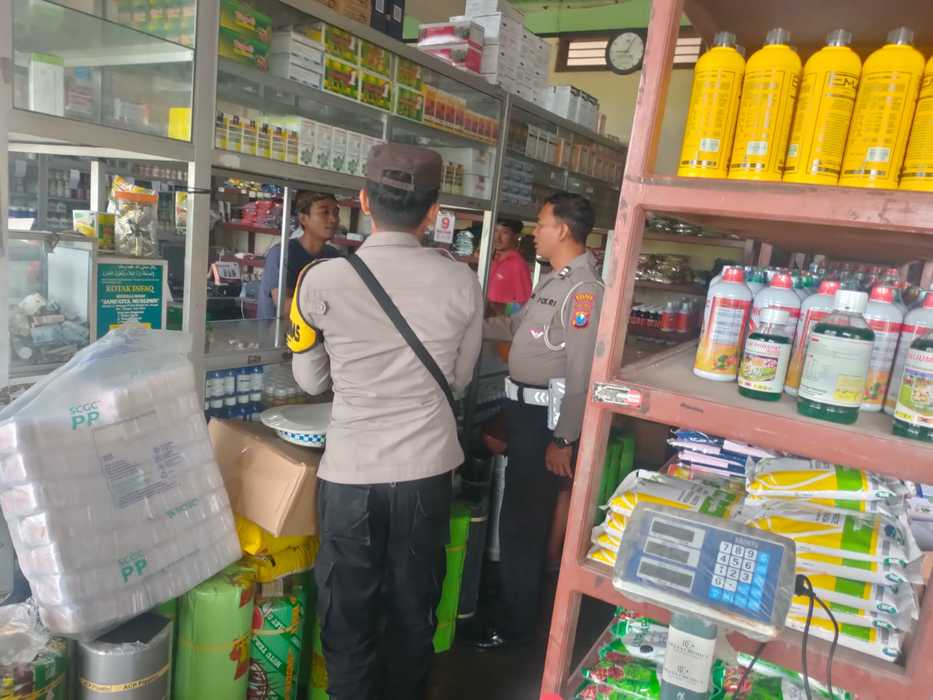 Personil melakukan patroli di minimarket dan bertemu karyawan toko setempat sembari menyampaikan himbauan tentang kewaspadaan terhadap gangguan Kamtibmas.