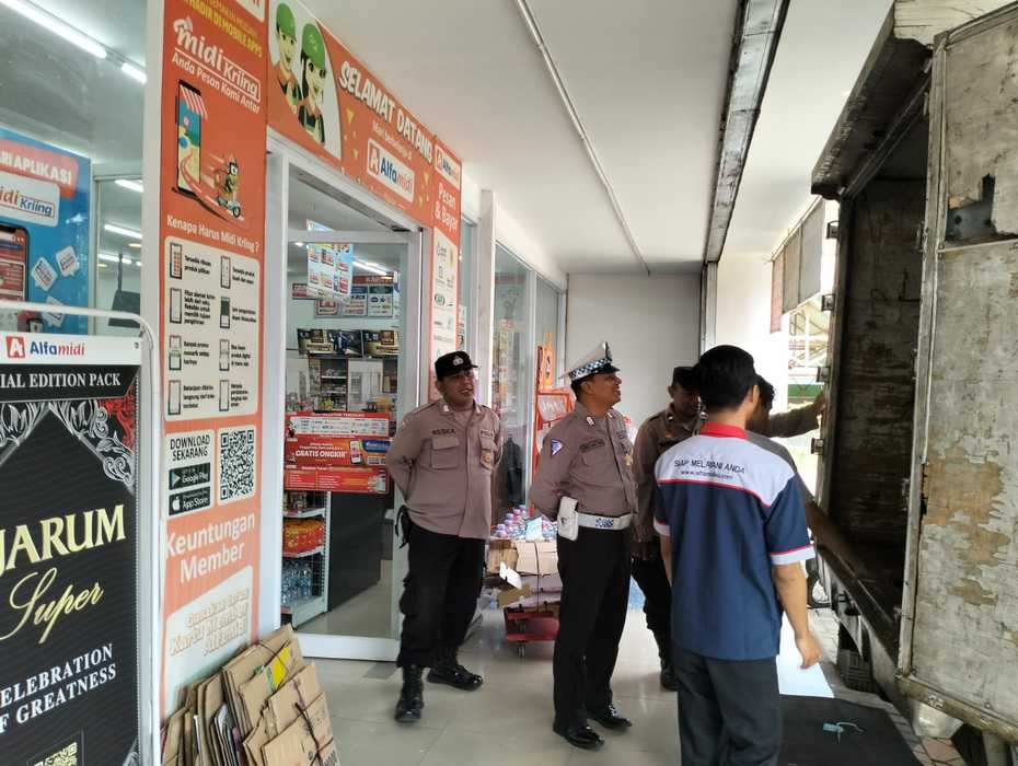 Personil melakukan patroli di minimarket dan bertemu karyawan toko setempat sembari menyampaikan himbauan tentang kewaspadaan terhadap gangguan Kamtibmas.