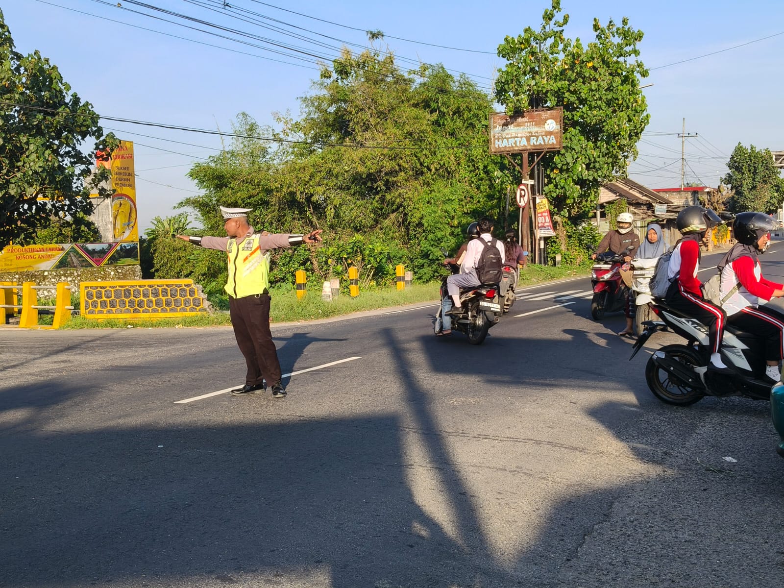 Polres Blitar Kota – Setiap pagi hari anggota Polsek Srengat Polres Blitar Kota selalu hadir di tengah – tengah masyarakat yang membutuhkan pelayanan masyarakat terutama pengguna jalan.Anggota Polsek Srengat melaksanakan kegiatan pengaturan arus lalu lintas baik di depan sekolah maupun di simpul – simpul jalan. Senin, 20/04/2026.