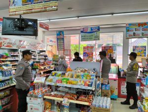 Personil melakukan patroli di minimarket dan bertemu karyawan toko setempat sembari menyampaikan himbauan tentang kewaspadaan terhadap gangguan Kamtibmas.