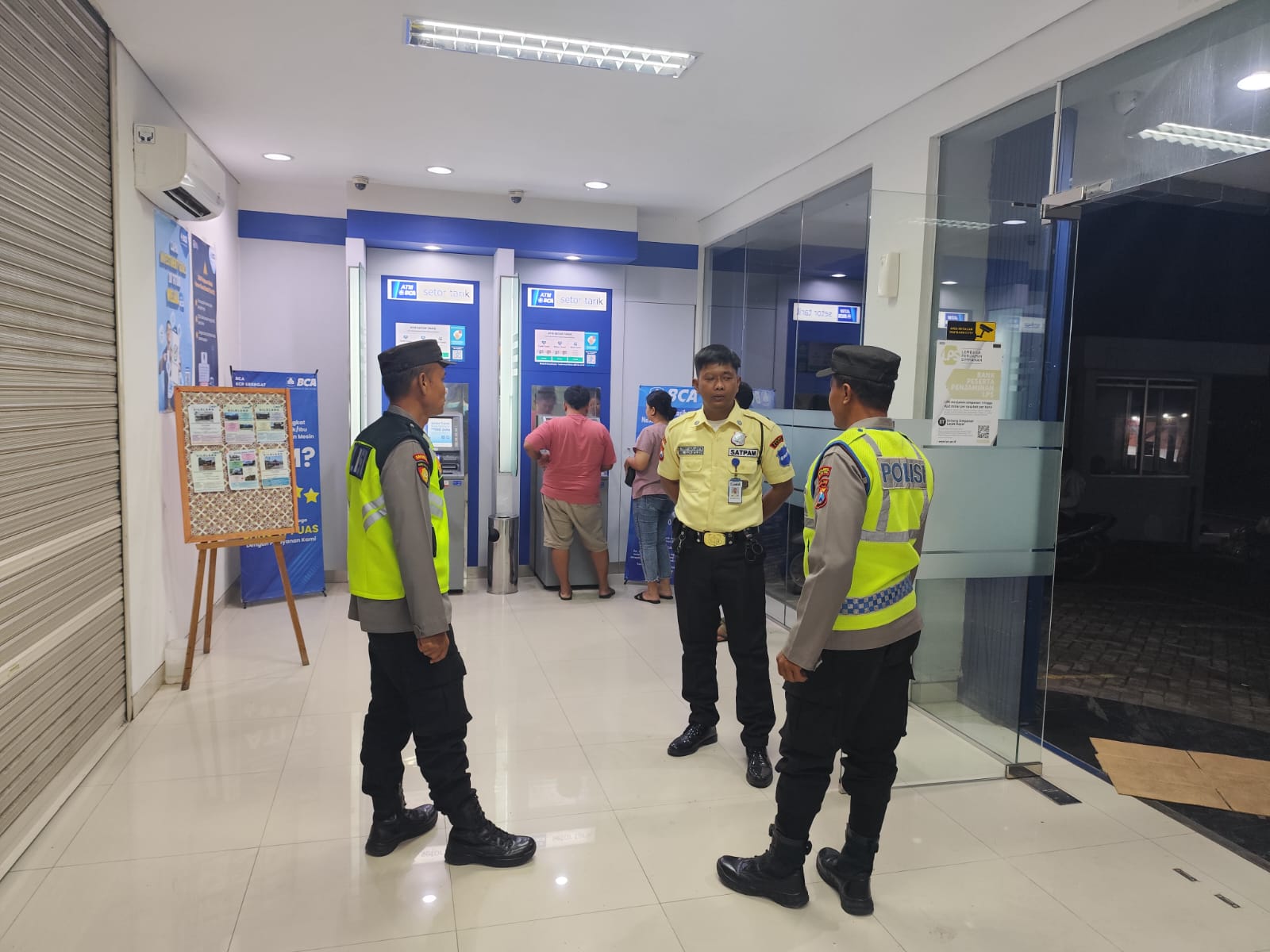 Petugas patroli Polsek Srengat Polres Blitar Kota kali ini melaksanakan patroli di sekitaran mesin Anjungan Tunai Mandiri (ATM). Hal ini dilakukan untuk mengantisipasi terjadinya tindak kejahatan.