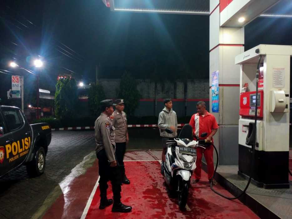 Patroli dialogis Polsek Nglegok di obyek vital SPBU beri himbauan Kamtibmas kepada warga