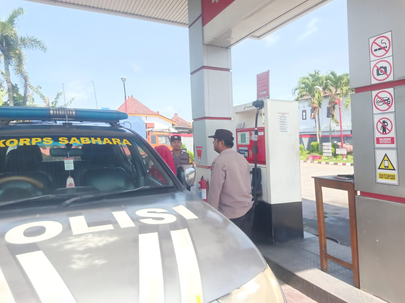Anggota Polsek Srengat Melakukan Patroli dan Dialogis Berkaitan Dengan Gas LPG yang tersedia di SPBU