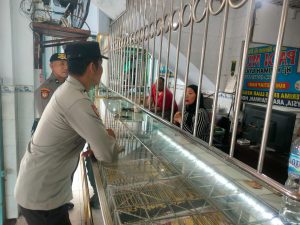 Personil melakukan patroli di minimarket dan bertemu karyawan toko setempat sembari menyampaikan himbauan tentang kewaspadaan terhadap gangguan Kamtibmas.
