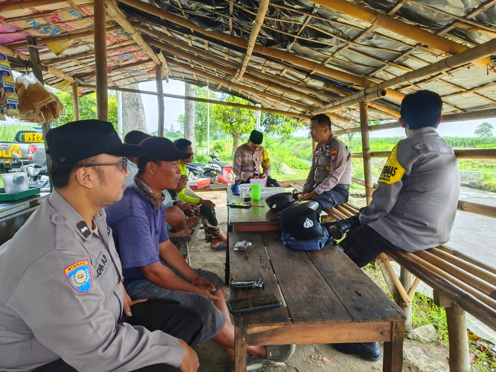 Kegiatan tersebut dilakukan dengan menyambangi warga yang sedang beristirahat di sebuah gubuk sawah. Dalam suasana santai dan penuh keakraban, anggota Polsek Wonodadi berdialog langsung dengan masyarakat guna menyampaikan pesan-pesan kamtibmas serta mendengarkan aspirasi maupun permasalahan yang berkembang di lingkungan sekitar.