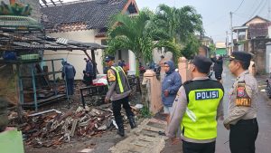 Blitar Kota – Anggota Polsek Sukorejo mendatangi TKP Belasan rumah di Kecamatan Sukorejo, Kota Blitar porak poranda pada bagian atap usai diterjang angin puting beliung, Jum’at (3/4/2026) sore. Akibatnya sejumlah atap rumah hancur hingga beberapa bangunan mengalami kerusakan pada tiang penyangga.