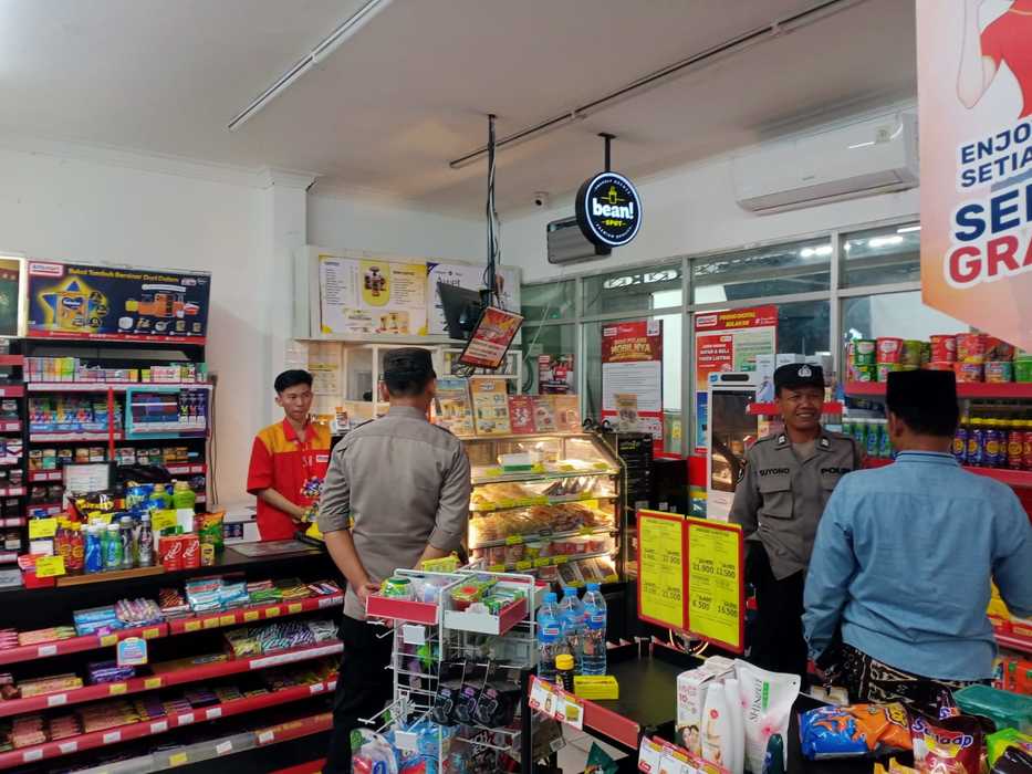 Personil melakukan patroli di minimarket dan bertemu karyawan toko setempat sembari menyampaikan himbauan tentang kewaspadaan terhadap gangguan Kamtibmas.