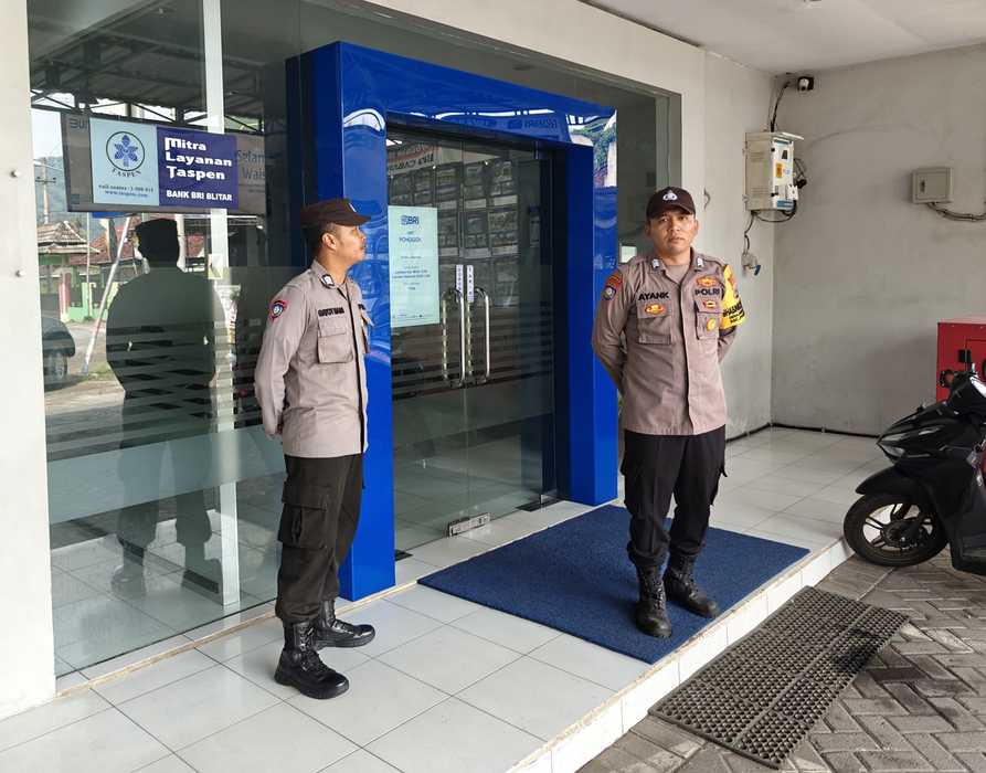 Dalam upaya menciptakan suasana yang aman, nyaman, dan kondusif, Bhabinkamtibmas Polsek Ponggok Bripka Aris dan Brigadir Gatot, melaksanakan patroli ke objek vital guna meningkatkan kerjasama kamtibmas dengan security Bank, Sabtu (19/05/2025)
