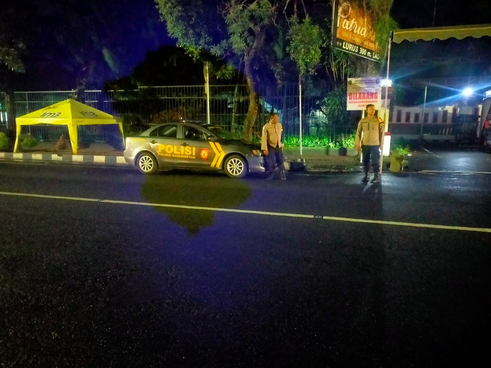 Anggota Polsek Sananwetan melakukan pemantauan secara intensif dengan menyalakan lampu rotator biru (blue light) sebagai tanda kehadiran polisi di tengah masyarakat. Selain melakukan patroli mobile, petugas juga menyusuri sejumlah titik yang sering dijadikan tempat berkumpulnya pemuda dan pengguna jalan pada malam hari. Langkah ini dilakukan guna memastikan situasi tetap aman, tertib, dan kondusif menjelang pelaksanaan kegiatan drag race resmi.