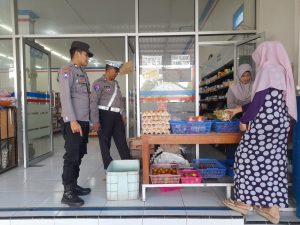 Personil melakukan patroli di minimarket dan bertemu karyawan toko setempat sembari menyampaikan himbauan tentang kewaspadaan terhadap gangguan Kamtibmas.