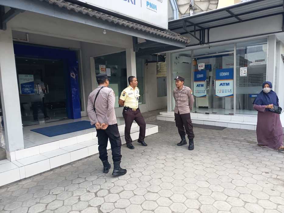 Patroli anggota Polsek Nglegok di ATM perbankan berikan himbauan Kamtibmas kepada warga yang bertransaksi keuangan
