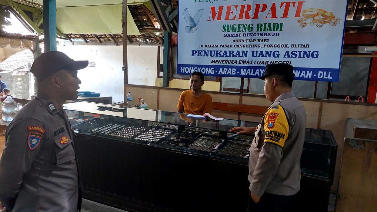 Dalam upaya menjaga situasi keamanan dan ketertiban masyarakat (Kamtibmas), Polsek Ponggok Polres Blitar Kota melaksanakan patroli kewilayahan, dilaksanakan oleh Bripka Luluk dan Bripka Aris melaksanakan kegiatan patroli di pertokoan emas di wilayah Pasar Cangkring Desa Gembongan. Hal ini dilakukan untuk mengantisipasi tindak kriminalitas di siang hari, Kamis (24/042025).