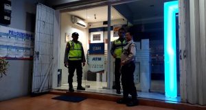 Dalam kegiatan patroli ini, anggota melaksanakan pengecekan gerai ATM BRI dan berdialogis dengan satpam perbankan.