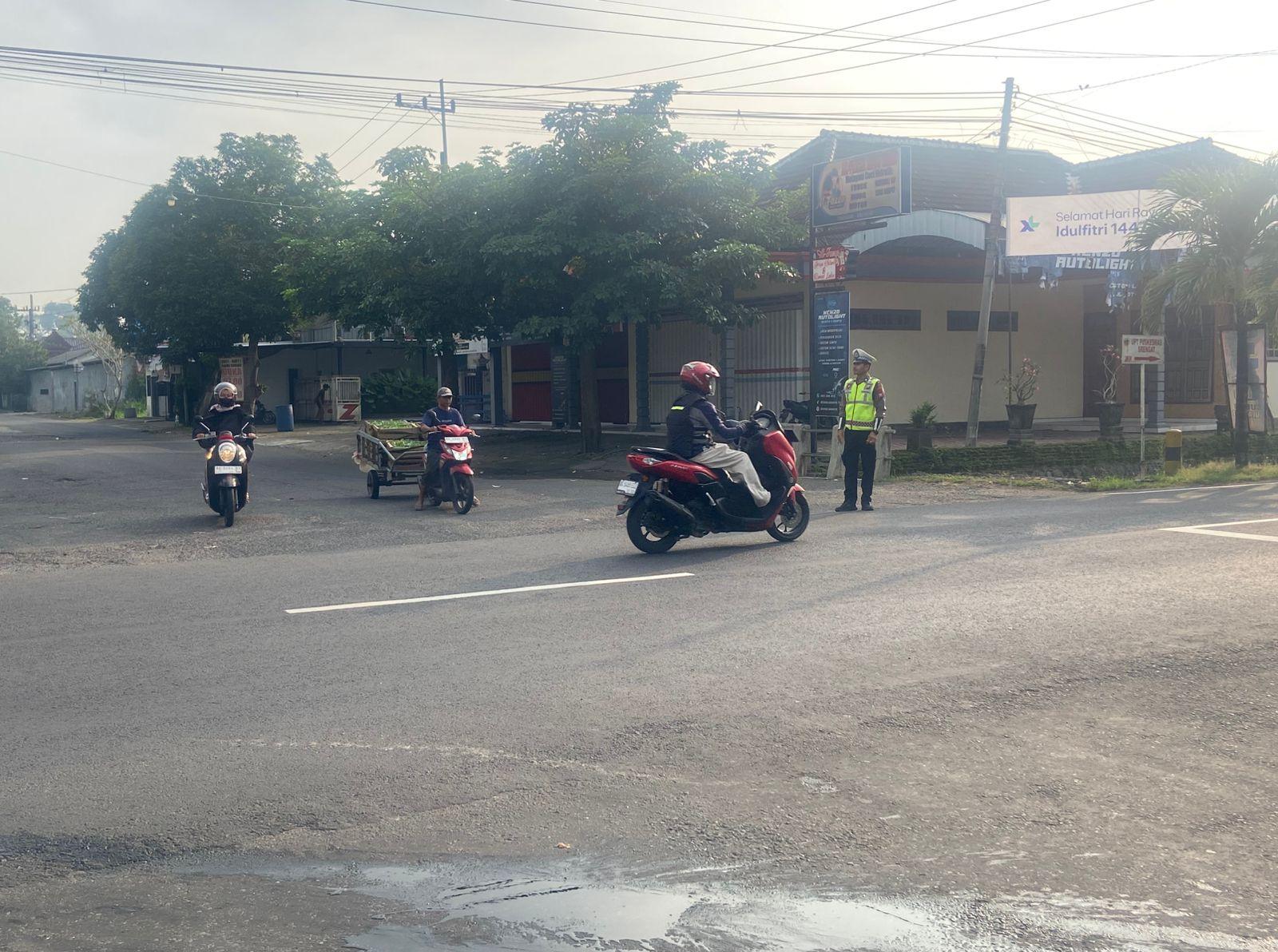 Polres Blitar Kota – Setiap pagi hari anggota Polsek Srengat Polres Blitar Kota selalu hadir di tengah – tengah masyarakat yang membutuhkan pelayanan masyarakat terutama pengguna jalan.Anggota Polsek Srengat melaksanakan kegiatan pengaturan arus lalu lintas baik di depan sekolah maupun di simpul – simpul jalan. Senin, 13/04/2026.