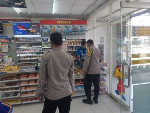 Personil melakukan patroli di minimarket dan bertemu karyawan toko setempat sembari menyampaikan himbauan tentang kewaspadaan terhadap gangguan Kamtibmas.
