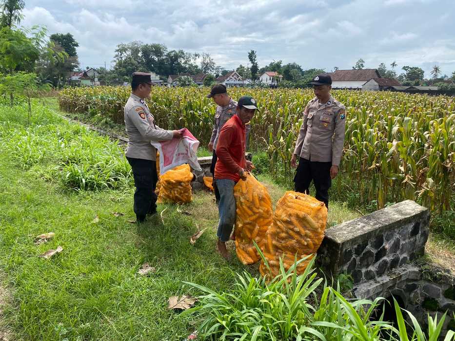 Bhabinkamtibmas Polsek Ponggok melakukan pendampingan ketahanan pangan warga di bidang pertanian jenis jagung dan sayuran Desa Bendo Kec. Ponggok Kab. Blitar