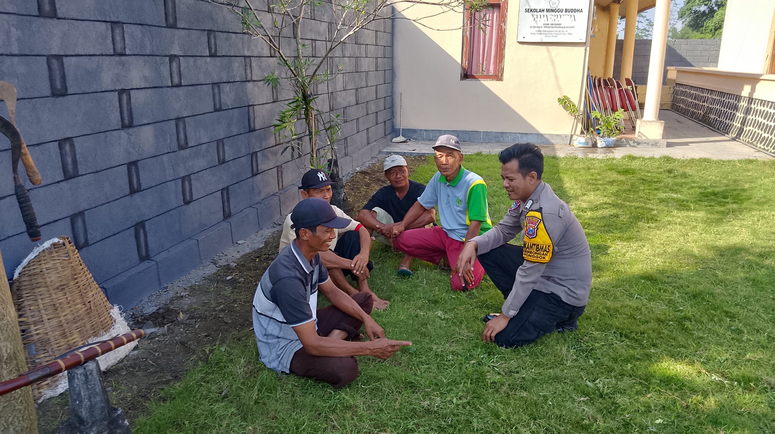Bhabinkamtibmas Desa Gembongan Bripka Wiwit mendengarkan aspirasi masyarakat melalui program Jumat Curhat di desa binaan ,Jumat (27/06/2025
