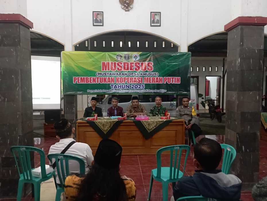 Dalam rangka mendukung program ketahanan ekonomi desa dan penguatan sektor usaha masyarakat, Bhabinkamtibmas Polsek Ponggok Aiptu Puguh menghadiri kegiatan Musyawarah Desa Khusus (Musdesus) terkait pembentukan Koperasi Desa Merah Putih, bertempat di Balai Desa Maliran, Rabu (21/05/2025)
