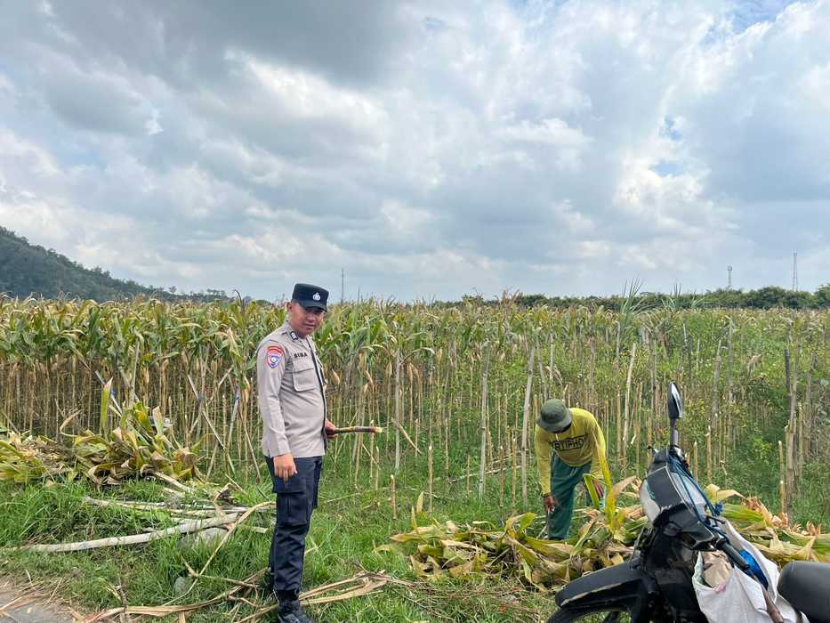Bhabinkamtibmas Polsek Ponggok Polres Blitar Kota melakukan sambang kepada petani jagung di Desa Jatilengger Kec. Ponggok Kab. Blitar. Senin (08/09/2025).