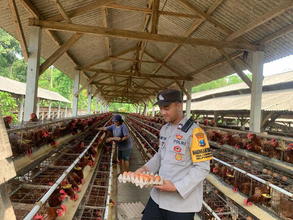 Bhabinkamtibmas Polsek Ponggok melakukan kunjungan dan koordinasi ke peternak ayam petelur pada Rabu (16/04/2025) pagi.