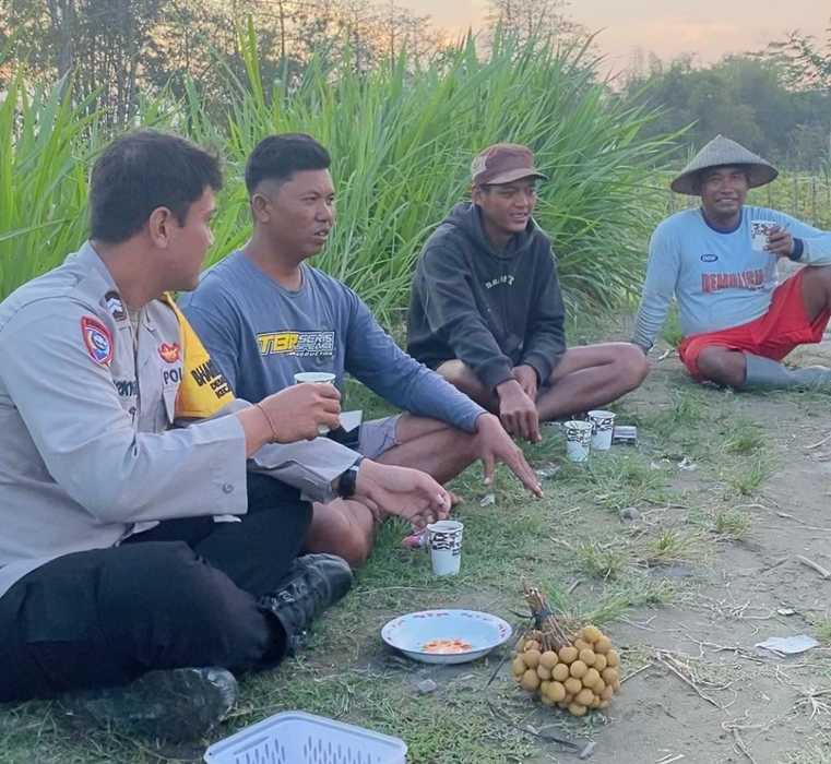 Rutinitas Bhabinkamtibmas Polsek udanawu silaturahmi ke warga petani guna sampaikan pesan ketahanan pangan nasional