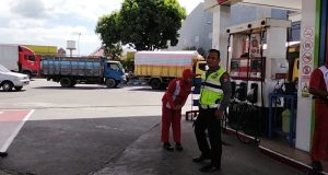 Polsek Sukorejo – Anggota Polsek Sukorejo melaksanakan kegiatan patroli dan dialogis di SPBU Pakunden, Kecamatan Sukorejo, Kota Blitar pada siang hari, Sabtu (11/10/2025).